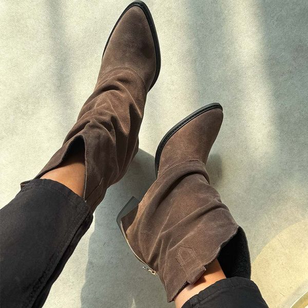 Zamszowe w odcieniu ziemi Polskie kowbojki damskie Deoni D394