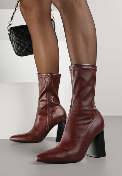 Bordowe Przylegające Botki Vices na Słupkowym Obcasie Nevitte