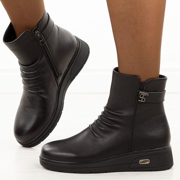 Czarne skórzane botki damskie na koturnie T.Sokolski Z25-77