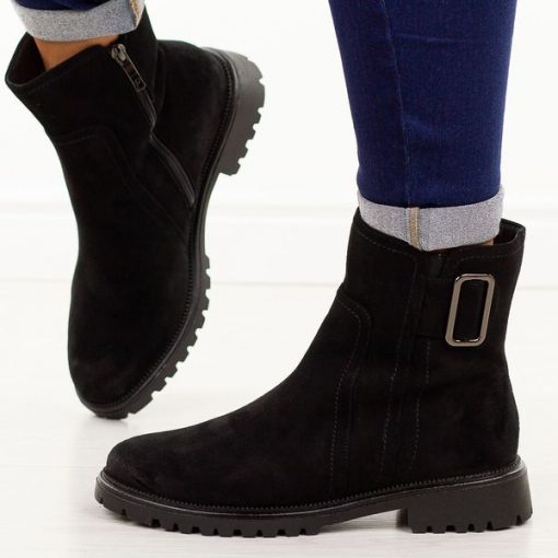 Czarne zamszowe botki damskie Potocki 19328