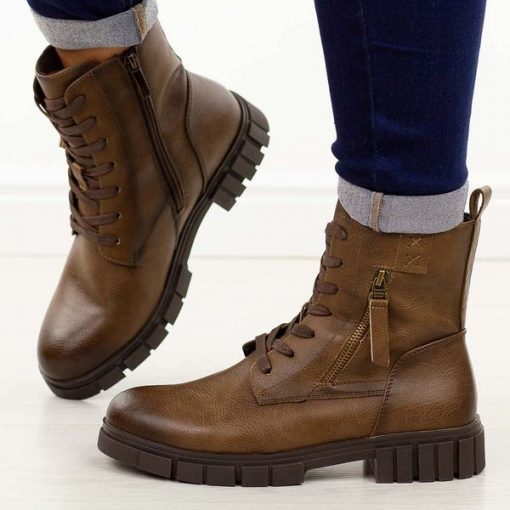 Brązowe botki damskie na chłodną jesień oraz zimę to propozycja dla kobiet, które cenią sobie wygodę, trwałość i modny wygląd w jednym. Stylowa cholewka wykonana z materiału skóropodobnego prezentuje się elegancko i nowocześnie, a praktyczne zapięcie na suwak oraz sznurowanie pozwala idealnie dopasować obuwie do stopy. Klasyczny okrągły nosek sprawia, że buty są komfortowe nawet […]