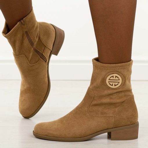 Beżowe zamszowe botki damskie Jezzi asa198-28