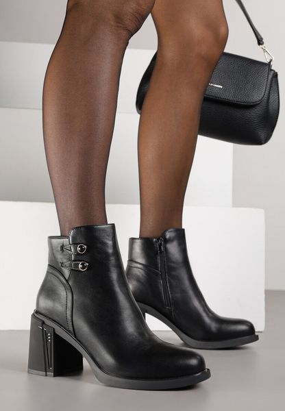 Czarne Basicowe Botki do Kostki VICES na Słupkowym Obcasie Naleasa