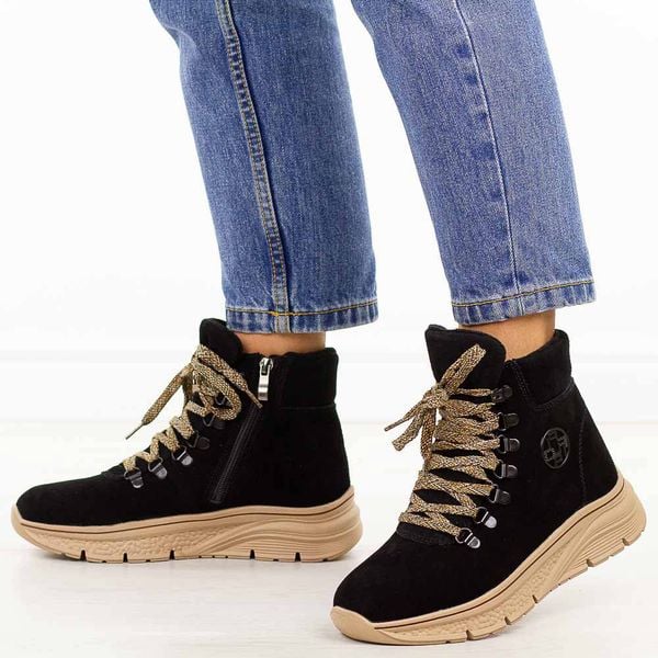 Czarne skórzane botki damskiena chłodną jesień oraz zimę to doskonałe obuwie dla kobiet ceniących sobie wygodę, trwałość i stylowy wygląd. Cholewka wykonana została z wysokiej jakości skóry naturalnej zamszowej, która nadaje butom elegancji oraz ponadczasowego charakteru. Model posiada praktyczne wiązanie na sznurowadła oraz wygodny suwak, co ułatwia zakładanie i idealne dopasowanie do stopy. Wnętrze zostało ocieplone […]