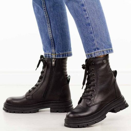 Czarne skórzane botki damskie na traperze T.Sokolski Z25-345