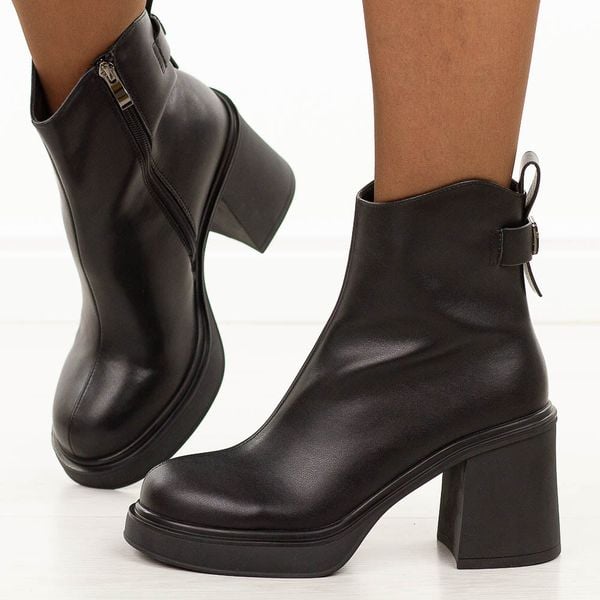 Czarne skórzane botki damskie na słupku Cambell 98301