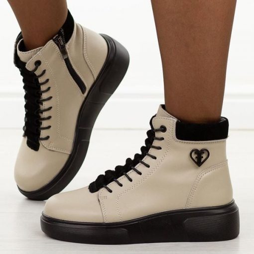 Beżowe skórzane botki damskieto stylowe i praktyczne obuwie idealne na chłodną jesień oraz zimę. Wykonane ze skóry naturalnej, prezentują się niezwykle elegancko i nowocześnie. Cholewka ozdobiona została subtelną metaliczną ozdobą w kształcie serca, która nadaje butom wyjątkowego charakteru i kobiecego akcentu. Botki są zapinane na suwak oraz dodatkowo na sznurowadła, co zapewnia wygodne zakładanie i perfekcyjne […]