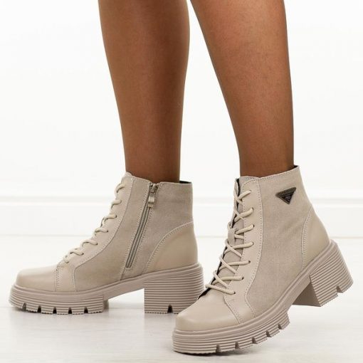 Beżowe skórzane botki damskiena chłodną jesień i zimę to doskonały wybór dla kobiet, które cenią sobie styl i komfort. Cholewka wykonana jest z połączenia wysokiej jakości skóry naturalnej oraz eleganckiej skóry zamszowej, co nadaje obuwiu wyjątkowego charakteru. Botki zapinane są na suwak oraz posiadają sznurowania, dzięki czemu można je idealnie dopasować do stopy. Wnętrze obuwia zostało […]
