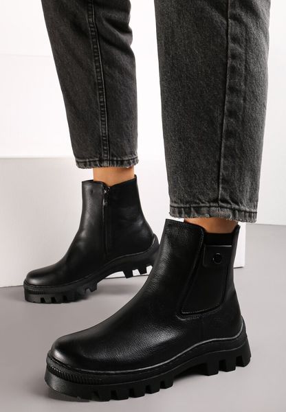 Czarne Botki Sztyblety Chunky na Platformie Shaaf