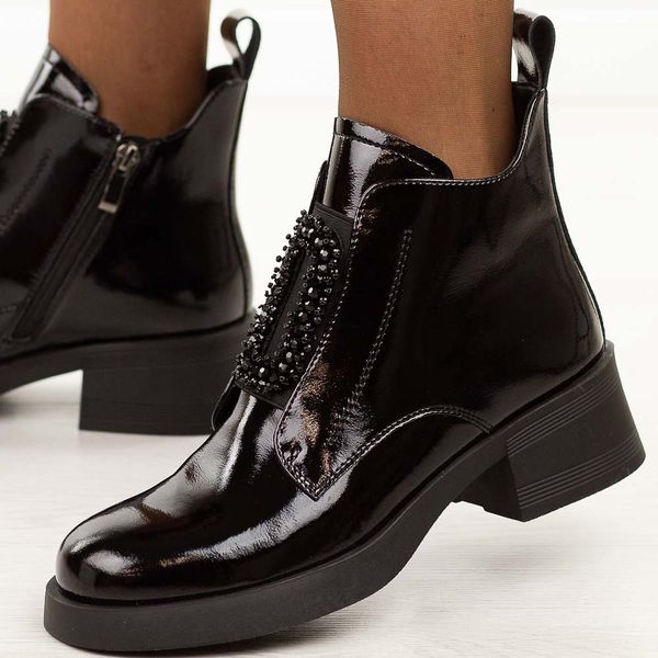 Czarne lakierowane skórzane botki damskie DiA 52-868