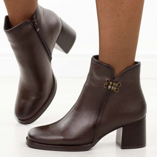 Brązowe skórzane botki damskieto stylowe i wygodne obuwie stworzone na chłodną jesień oraz zimę. Wykonane ze skóry naturalnej, wyróżniają się wysoką jakością, trwałością oraz eleganckim designem. Subtelna ozdoba umieszczona w bocznej części cholewki dodaje im wyjątkowego charakteru, dzięki czemu buty prezentują się modnie i ponadczasowo. Botki są zapinane na praktyczny suwak, co zapewnia wygodę podczas zakładania […]