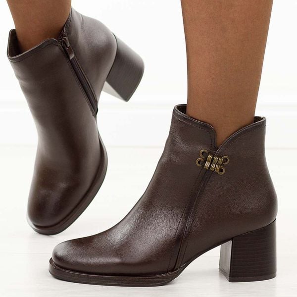 Brązowe skórzane botki damskie na słupku Sergio Leone Bt25209S