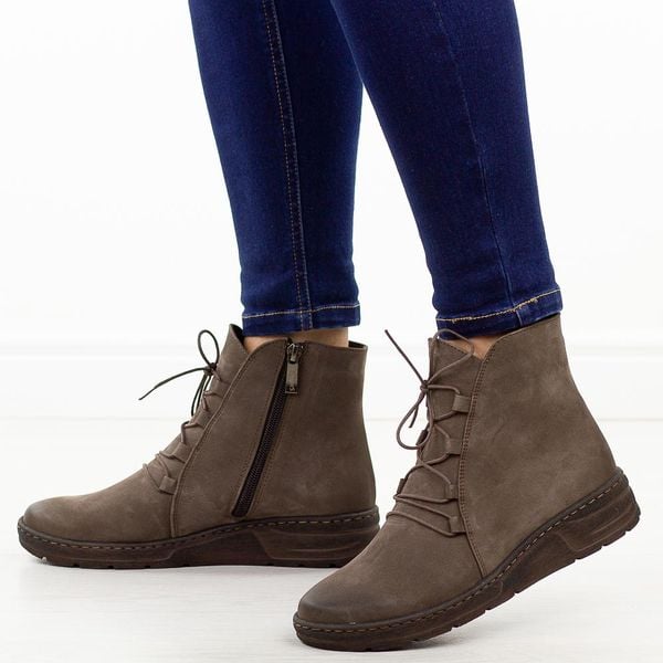 Brązowe nub. skórzane Polskie botki damskie zimowe Gregors 1093