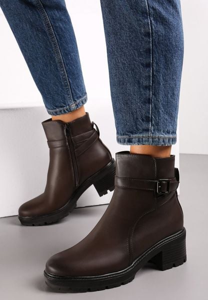 Brązowe Botki z Paskiem ze Sprzączką Wokół Kostki na Słupku Botera