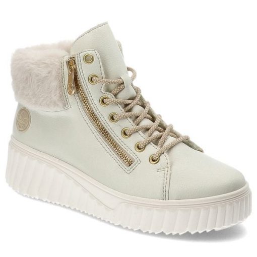 Białe Botki Rieker Wygodne Obuwie Damskie Z Futerkiem