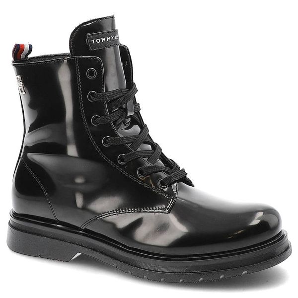 Botki damskie Tommy Hilfiger, cholewka ze skóry lakierowanej sznurowanie wysoka cholewka masywna podeszwa z bieżnikiem, black, T4A5-32411-1453999