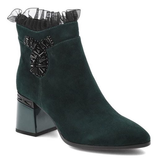 Zielone Botki S.Barski Eleganckie Obuwie Damskie Z Broszką