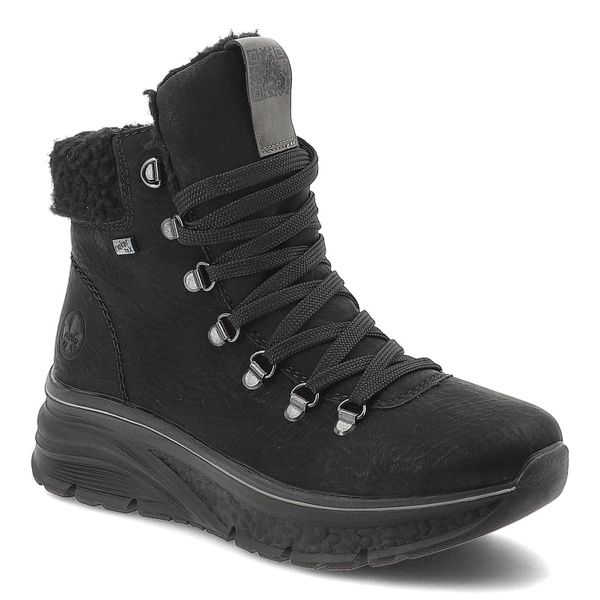 Botki damskie Rieker, antistress na grubej podeszwie ocieplane futerkiem i na suwak, czarne, 48034-00-Black