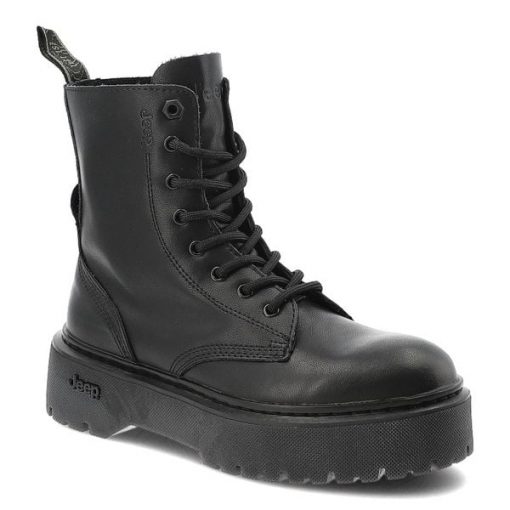 Czarne Trapery Jeep Stylowe Skórzane Buty Damskie