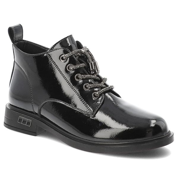 Botki damskie S. Barski, eleganckie na płaskim obcasie i skórzane lakierowane, czarne, MR52-124