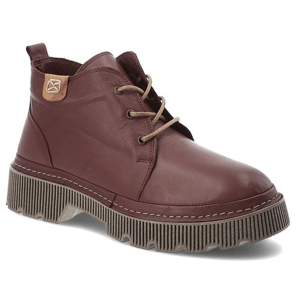 Botki damskie Artiker, skórzane na grubej podeszwie z okrągłym noskiem i na zamek, bordowe, 57C2032