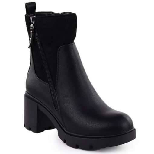 Botki damskie ocieplane na słupku z zamkiem czarne M.Daszyński 23108