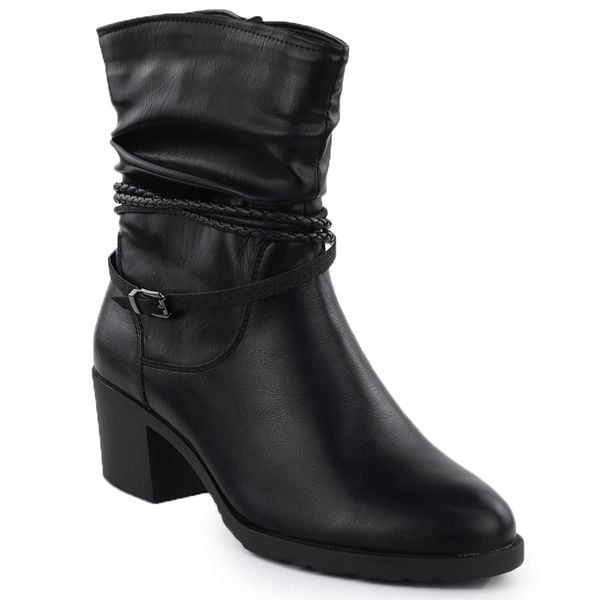 Marszczone botki na klocku damskie czarne Jezzi ASA128-63