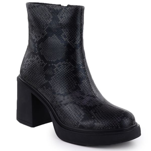 Skórzane botki damskie na słupku wężowe czarne Goe SS2N4152