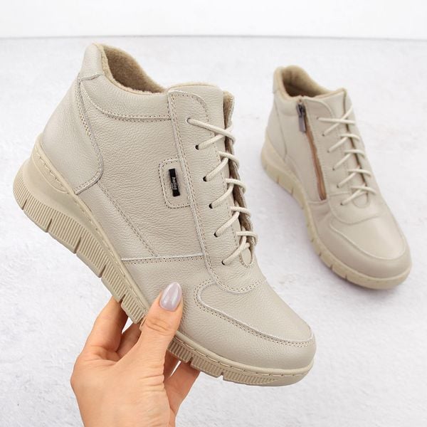 Skórzane botki damskie komfortowe na koturnie ekri Helios 543