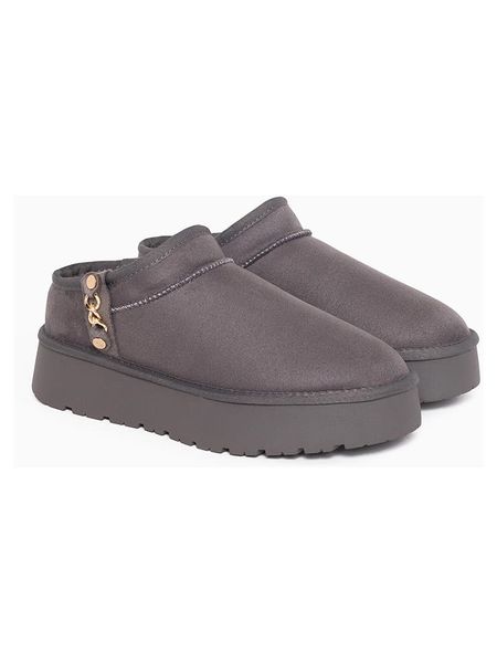 – wodoodporny materiał wierzchni o wyglądzie skóry welurowej („Microsuede”)- zapięcie: bez- noski: zaokrąglone- zapiętki: wzmocnione- wyściółka: ciepła- detale: metalicznie błyszczące elementy, ozdobne i formujące szwy- forma obcasa: platforma- podeszwa: antypoślizgowa