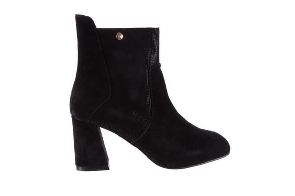 Czarne botki na obcasie marki BAYLA w całości wykonane ze skóry naturalnej zamszowej. Zapinane z boku na zamek. Po zewnętrznej oraz wewnętrznej stronie, na środku cholewki posiadają wstawkę ze skóry zamszowej ozdobionej pionowymi, metalicznymi czarnymi paseczkami. Wkładka wykonana ze skóry naturalnej. Wyściółka z miękkiego w dotyku materiału. Niewysoki, 7-centymetrowy obcas sprawia, że botki będą idealne […]