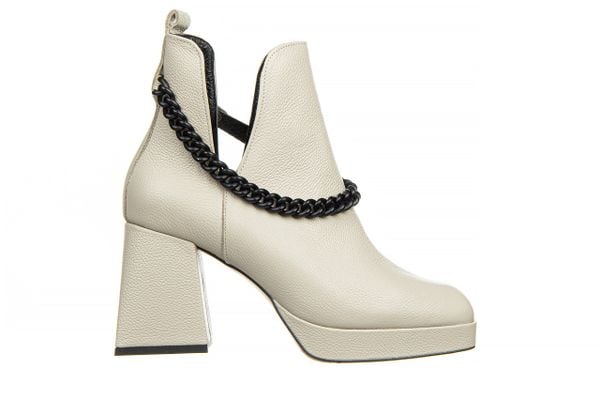 Botki marki Bayla wykonane z naturalnej skóry licowej w kolorze beżowym. Wkładka oraz wyściółka ze skóry naturalnej licowej zapobiegają poceniu się stóp oraz zapewniają odpowiednią cyrkulację powietrza we wnętrzu buta. Obuwie wsuwane na wygodnym 8,5-centymetrowym obcasie w pięknym geometrycznym kształcie. Platforma niweluje wysokość obcasa sprawiając, że buty są bardzo wygodne. Klasyczna cholewka z modnymi wycięciami […]