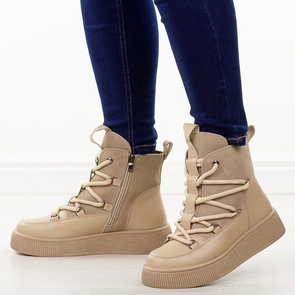 Beżowe skórzane botki damskie Cambell 52330