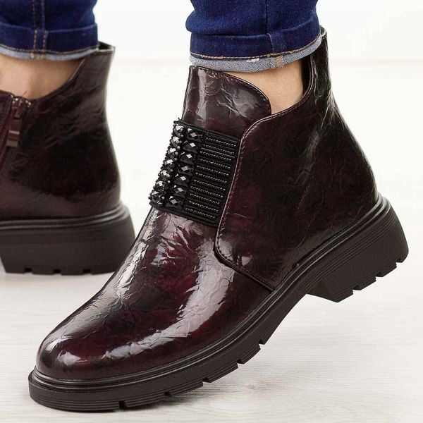 Bordowe lakierowane botki damskie M.Daszyński 2501-10