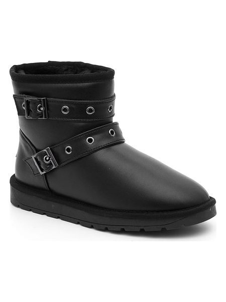 – materiał wierzchni ze skóry syntetycznej- zapięcie: bez- noski: zaokrąglone- detale: ozdobne i formujące szwy, ozdobny pasek- zapiętki: wzmocnione- wyściółka: ciepła- podeszwa: antypoślizgowa- kolor producenta: black