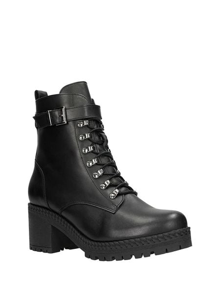 – skóra licowa- zapięcie: sznurowanie z bocznym suwakiem, sprzączka- noski: zaokrąglone – wyściółka: miękka- wyściełana wkładka- forma obcasa: blokowy- podeszwa: antypoślizgowa