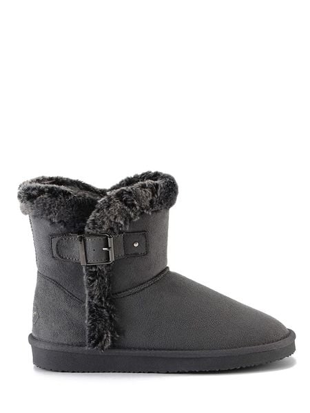 – wodoodporny materiał wierzchni – imitacja weluru („Microsuede”)- zapięcie: sprzączka- noski: okrągłe- detale: naszywka z logo, wstawka ze sztucznego futerka- wyściółka: ogrzewający materiał tekstylny- zapiętki: wzmocnione- podeszwa: profilowana- kolor producenta: Charcoal