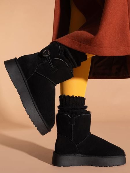 – skóra welurowa- zapięcie: system szybkiego zapinania- noski: zaokrąglone- noski i zapiętki: wzmocnione- wyściółka: ogrzewająca wełna- forma obcasa: platforma- podeszwa: antypoślizgowa