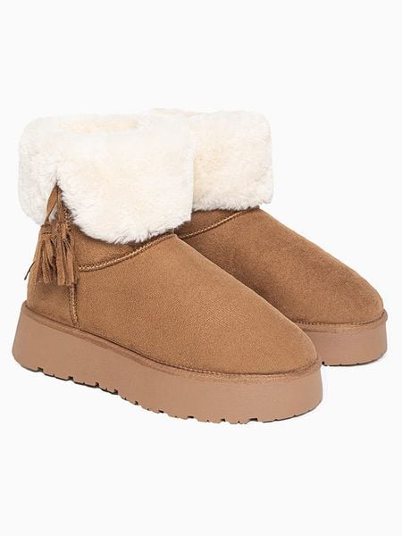 – zapięcie: bez- noski: zaokrąglone- detale: obszycie ze sztucznego futerka- forma obcasa: platforma- podeszwa: antypoślizgowa