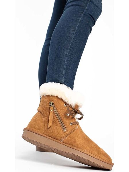 – wodoodporny materiał wierzchni o wyglądzie skóry welurowej („Microsuede”)- zapięcie: sznurowanie z bocznym suwakiem- noski: okrągłe- detale: obszycie ze sztucznego futerka- wyściółka: ogrzewający materiał tekstylny- podeszwa: profilowana- kolor producenta: Chestnut