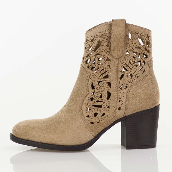 Beżowe botki damskie na słupku M.Daszyński Sa250-5