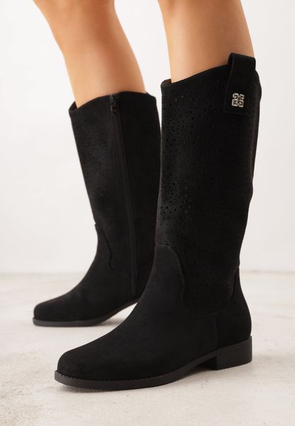 Czarne Botki Typu Kowbojki Ażurowe Ozdobione Metaliczną Aplikacją Iomosa