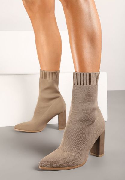 Ciemnobeżowe Botki z Elastyczną Cholewką Argastis