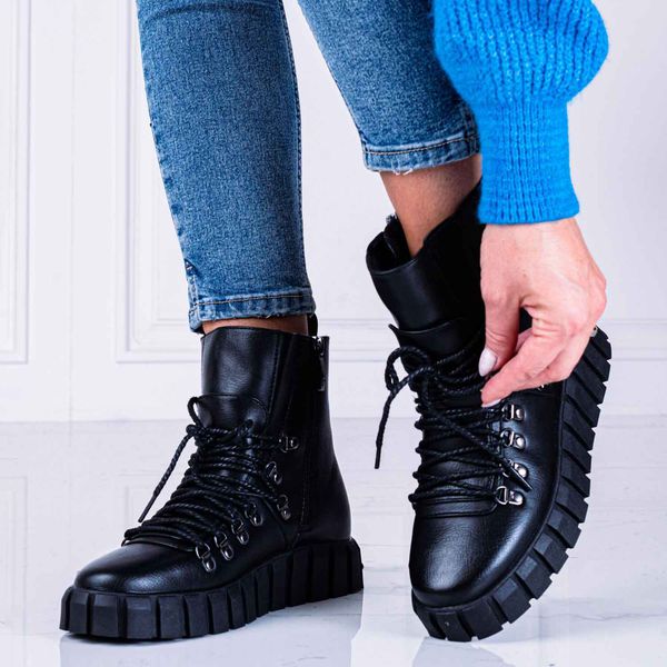 Czarne trapery, botki damskie na traperze Potocki 12135