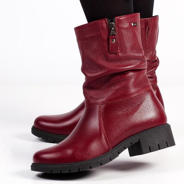 Bordowe wysokie skórzane Polskie botki damskie zimowe na traperze Gregors 793 Gruby Spód