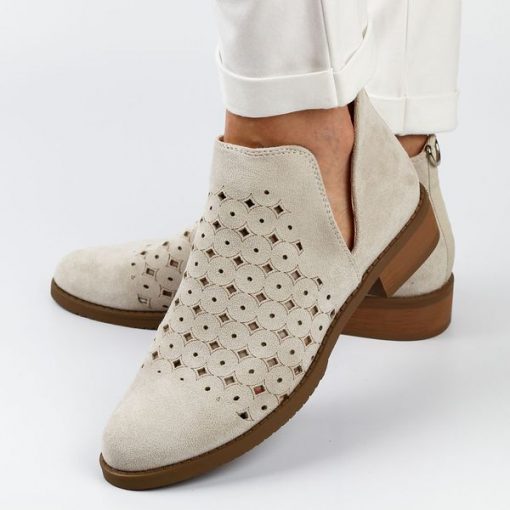 Beżowe jesienne ażurowe botki damskie M.Daszyński Sa62-102