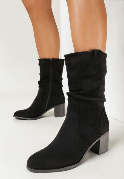 Czarne Botki Kowbojki na Niskim Słupku z Marszczoną Cholewką i Suwakiem Zortava