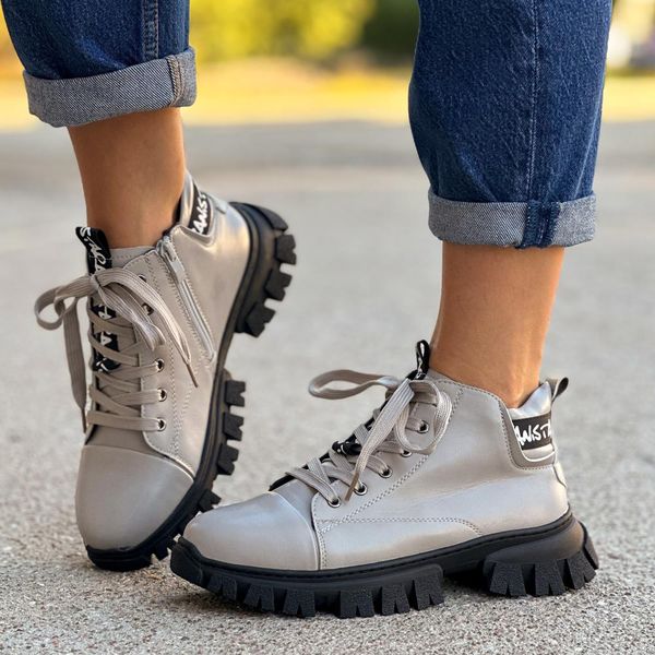 Szare trapery damskie:są pełnowartościowe w I gatunkusą starannie wykonane oraz odznaczają się wysoką trwałościąwnętrze i wkładka jest lekko ocieplonemaja elastyczną podeszwęspód: 4 – 2.5 cm, wysokość buta: 13.5 cm Kolor: Szary GWARANCJA na 12 miesięcy