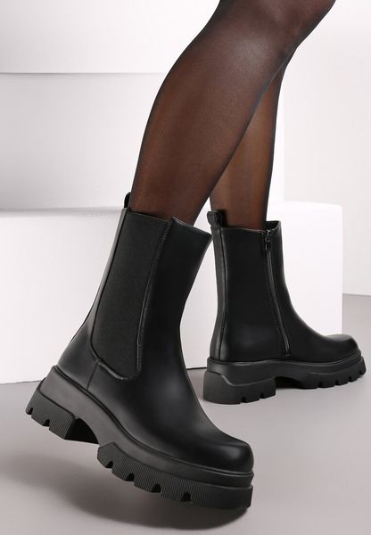 Czarne Botki z Elastyczną Wstawką na Cholewce i Tłoczeniu na Platformie Kisoma