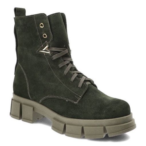 Zielone trzewiki POLLONUS – 5-1583-004 Welur Zielony Oliwka to wyśmienite buty w niespotykanym kolorze. Znakomita cholewka została utworzona ze skóry naturalnej. Stylowy fason oferuje solidne ucieplenie, niezawodne podczas zimowych spacerów. Materiałowa wkładka wspomaga bezpieczną izolację od chłodnej nawierzchni. Damskie trzewiki POLLONUS – 5-1583-004 Welur Zielony Oliwka